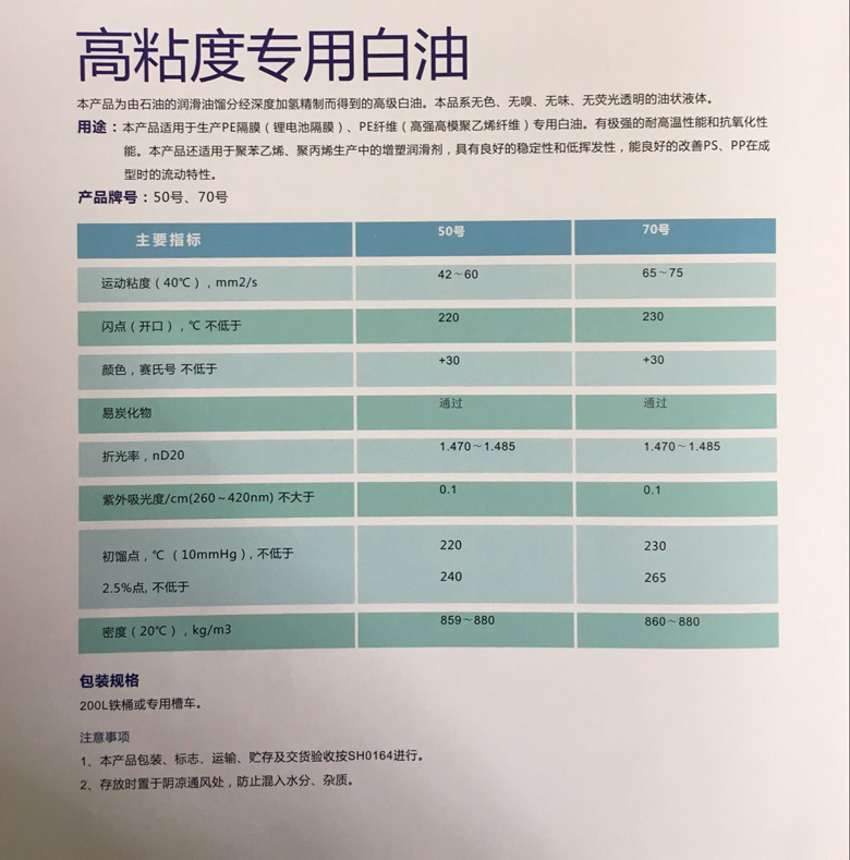 高粘度專用白油